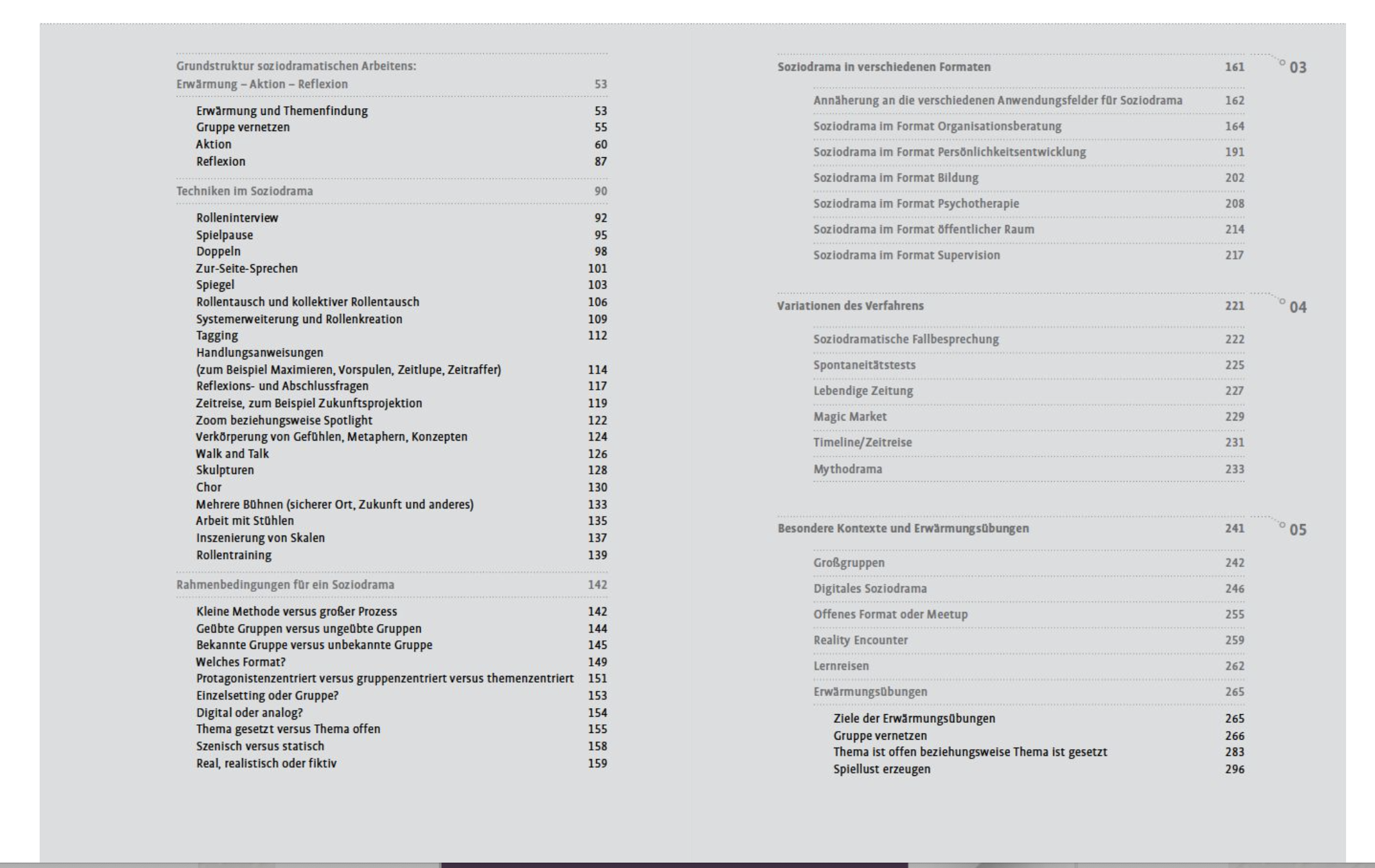 - Wissen & Perspektiven: Einsichten/ Instruktionen z.B. Empfehlung eines guten Therapeuten, Einführung in das Soziodrama, Permakultur)