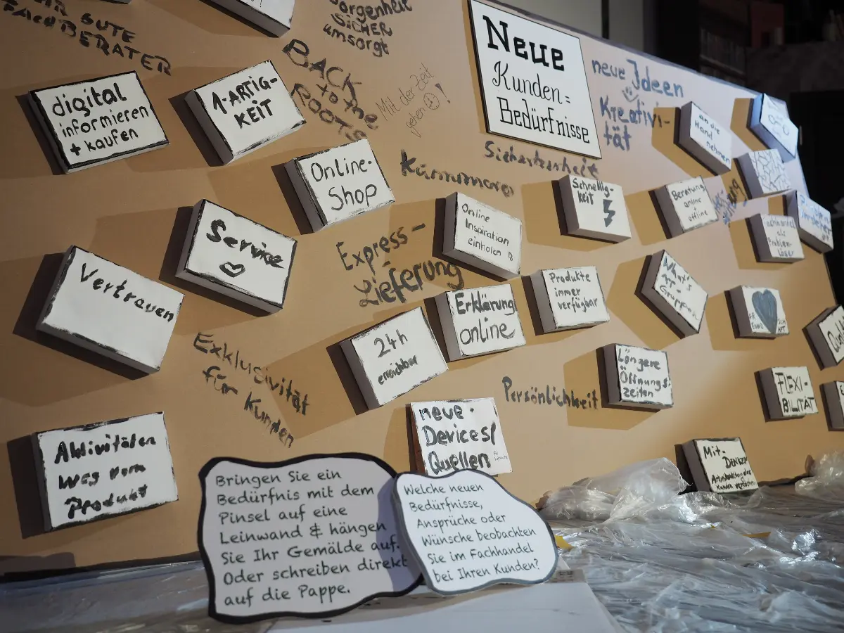 Persona-Aufstellungen sind eine schöne Möglichkeit, sich schnell Zielgruppen zu erschließen. Im Digital Transformation Club hat Caspar Siebel diese Aufstellung im Rahmen einer Design Thinking Session gemacht. Caspar hat einen Teilnehmer gebeten, eine Zielgruppe für seinen Fall zu nennen und ihn in die Rolle dieser Persona schlüpfen zu lassen. In unserem Fall war das eine Café-Besitzerin.