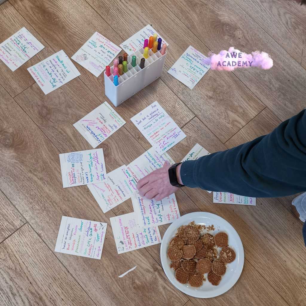 The briefing was concise: Welcome to Awe Academy – Experience Learning with nature, art and each other. Wear outdoor clothing (and be prepared come rain or shine), location, date and time and a time-schedule with limited info to create some curiosity.