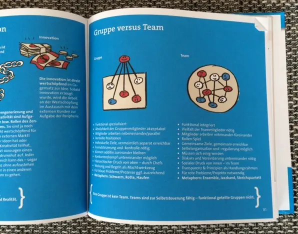 Niels Pflaeging und Silke Hermann haben in ihrem sehr lesens- und sehenswertem Buch „Komplexithoden“ eine schöne Übersicht über den Unterschied von Teams und Gruppen sowie zu Team-Kompositionen, Koalition für den Wandel, …