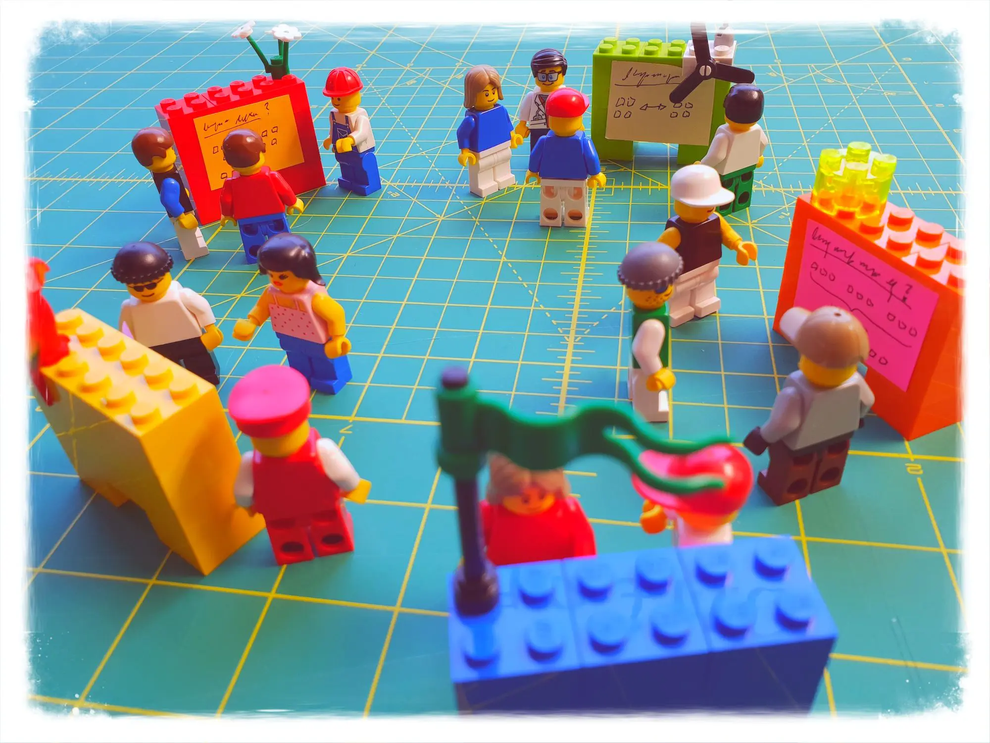 Du kannst das Zirkeltraining auch bis hin zum kompletten Freestyle gestalten und bist schnell bei einem Raum voller Themeninseln, in dem das Gesetz der zwei Füße gilt: Eine Stunde freies Flottieren im Raum, und jeder kann sich aussuchen, welche Themen er wie lange bearbeiten möchte. Wie so etwas aussehen kann, haben wir in diesem Beitrag über eine interaktive Session im Rahmen einer Konferenz sowie in diesem Beitrag über Großgruppenmoderation im Abenteuerland gezeigt.